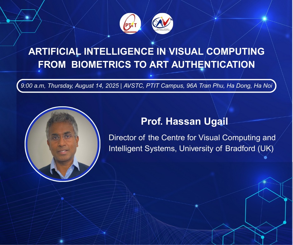 The seminar “Artificial Intelligence in Visual Computing: From Biometrics to Art Authentication”, delivered by Prof. Hassan Ugail, was successfully held at the Australia–Vietnam Strategic Technology Centre (PTIT) on 14 August 2025.